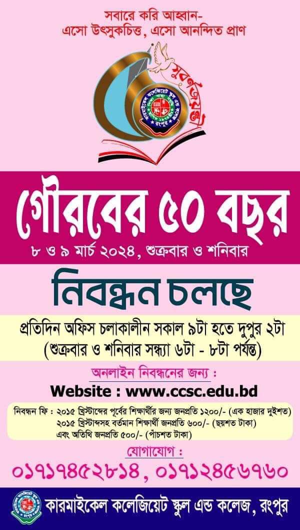 অত্র প্রতিষ্ঠানের ২০২৫-২০২৬ শিক্ষাবর্ষের একাদশ শ্রেণির শিক্ষার্থীদের জানানো যাচ্ছে যে, তাদের নিবন্ধন কার্যক্রম সম্পন্ন হয়েছে। আগামীকাল ১৬ নভেম্বর ২০২৫ তারিখ রবিবার সকাল ৯টায় উপস্থিত থেকে বিষয় ও ছবি দেখে স্বাক্ষর করার জন্য বলা হলো। অন্যথায় নিবন্ধন সংক্রান্ত কোন জঠিলতা সৃষ্টি হলে প্রতিষ্ঠান কর্তৃপক্ষ দায়ী থাকবে না, অধ্যক্ষ।