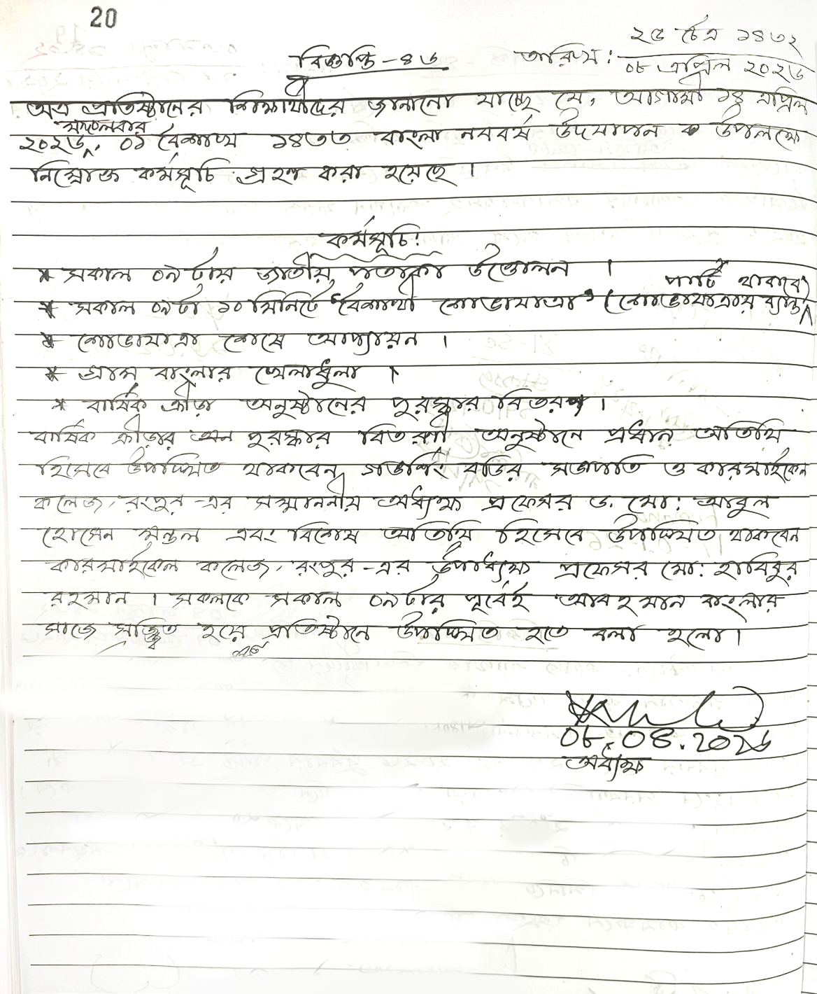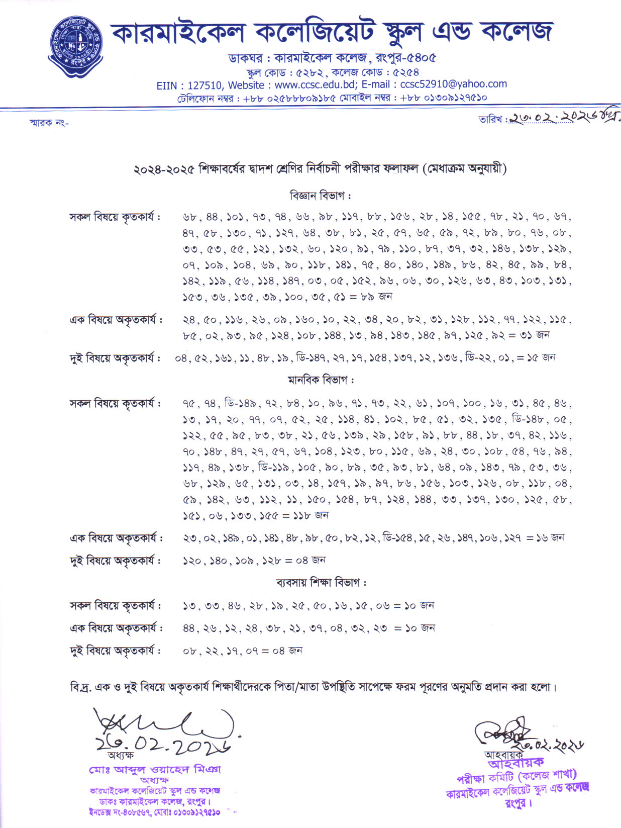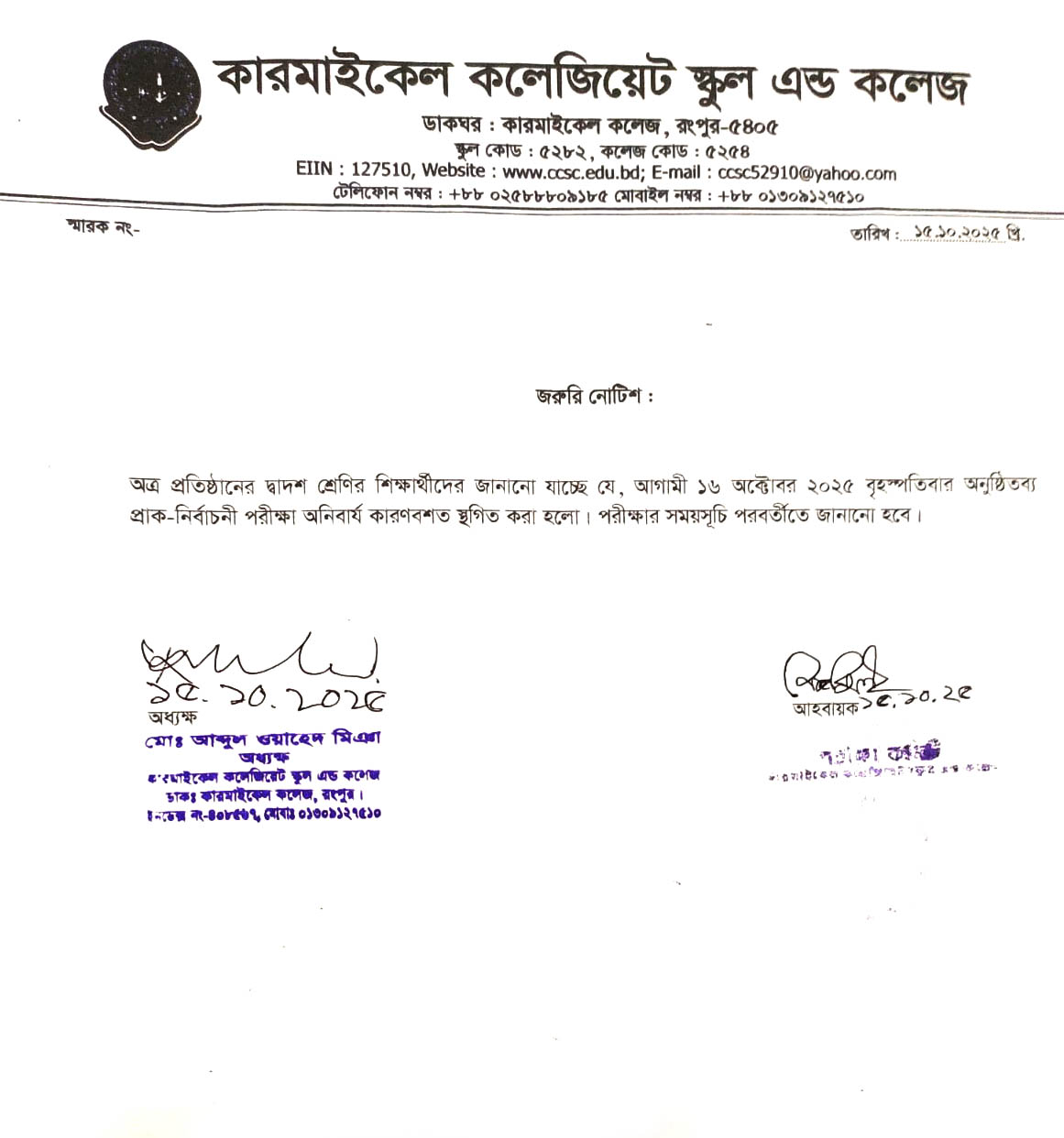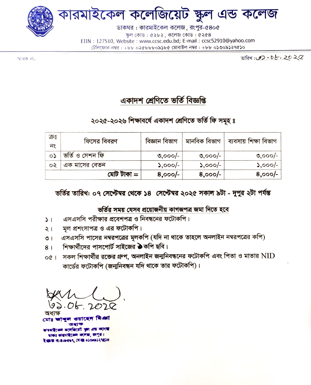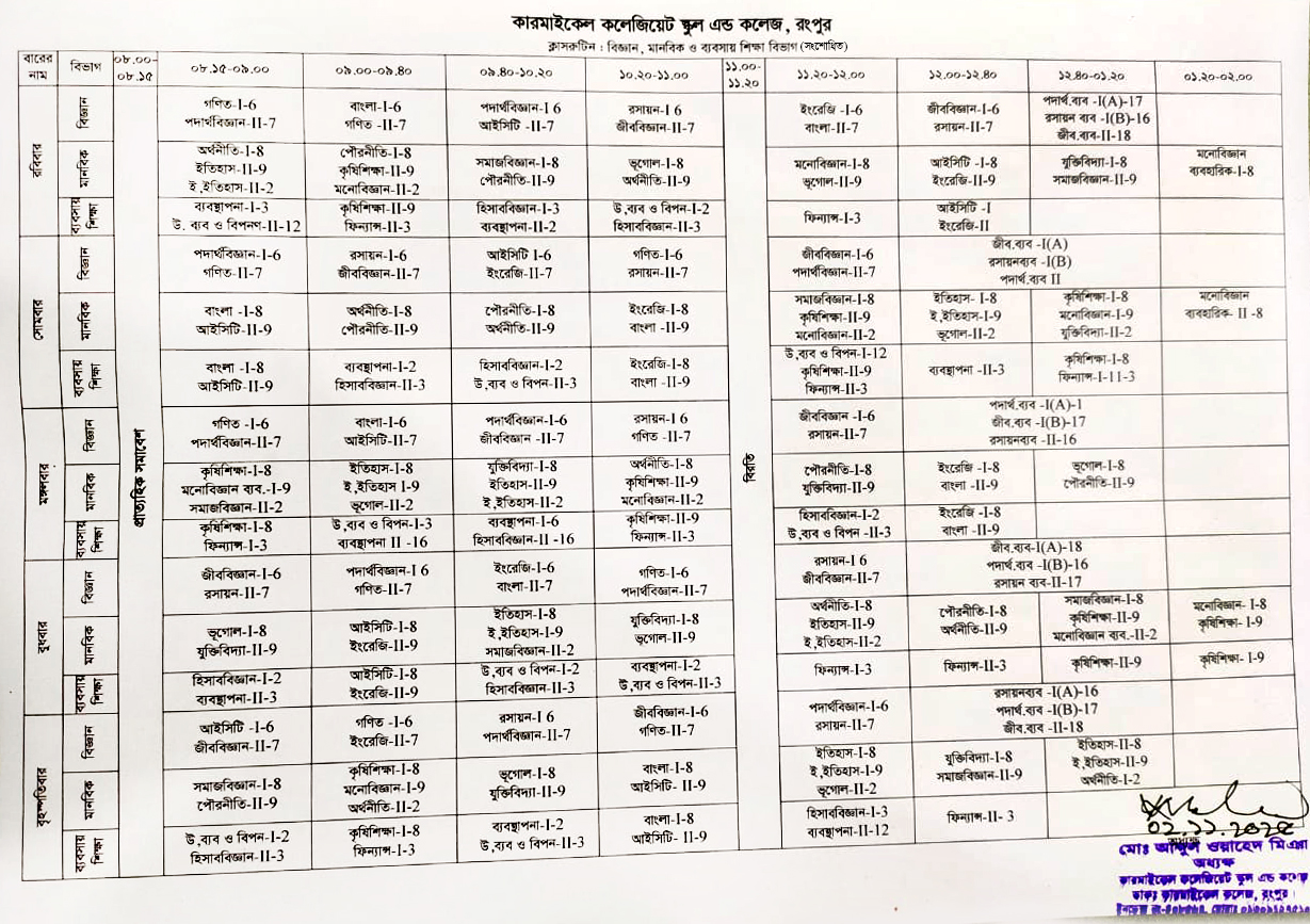 অত্র প্রতিষ্ঠানের একাদশ শ্রেণির নিবন্ধন, বেতন ও উপস্থিতি সংক্রান্ত নিচের নোটিশ দেখতে বলা হলো, অধ্যক্ষ